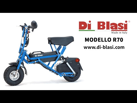 The Di Blasi R70 electric foldable moped is a practical and light mode of transport, very easy to fold and unfold, pleasant to drive, perfect for commuters, travelers, and generally, those who need to move around the city with agility and not get stuck in traffic.