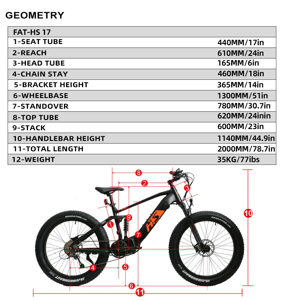 26"x4" Kenda Krusade Sport fat tires provide upgraded grip and traction on rugged roads.Whether you're up against sand, mud or snow, these tires will handle it with ease. The EUNORAU FAT-HS is ready for all-season, all-terrain riding.